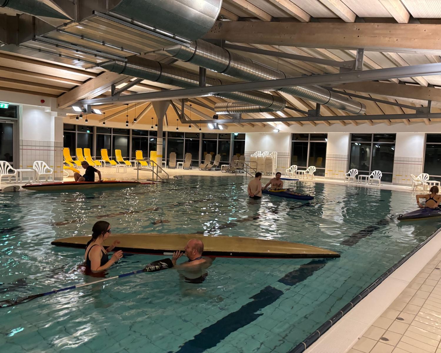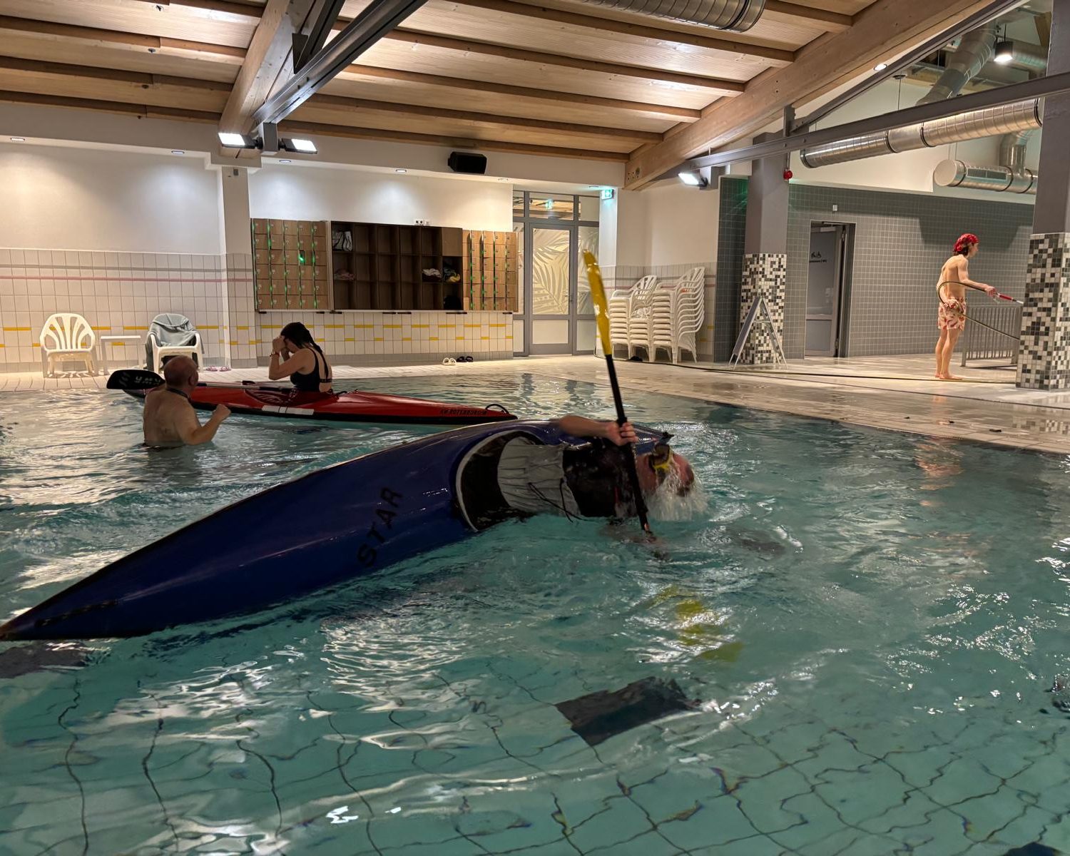 Der Valentinstag bei den Kanuwanderern wurde in diesem Jahr für unser Kentertraining verwendet. Das Ronolulu in Rotenburg stellt uns netterweise seit vielen Jahren die Becken nach Feierabend zur Verfügung, damit wir unter kontrollierten Bedingungen üben können, wie man aussteigt oder mit dem Boot rollt. Ziel ist es, dass sich alle sicher fühlen und wer möchte, kann auch gleich die Kenterrolle (auch bekannt als „Eskimorolle“) lernen.